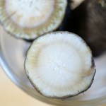 Ich finde die Klettenwurzel knackiger als die verwandte Schwarzwurzel. Das Aroma erinnert mich an Artischocken, die ja auch Korbblütler sind. Wilde Klettenwurzeln haben mehr Bitterstoffe, da hilft es die geschnittenen Wurzeln etwas zu wässern, aber nicht zu lange, damit es nicht zu viele Mineralien auswäscht, die ja allesamt wasserlöslich sind.