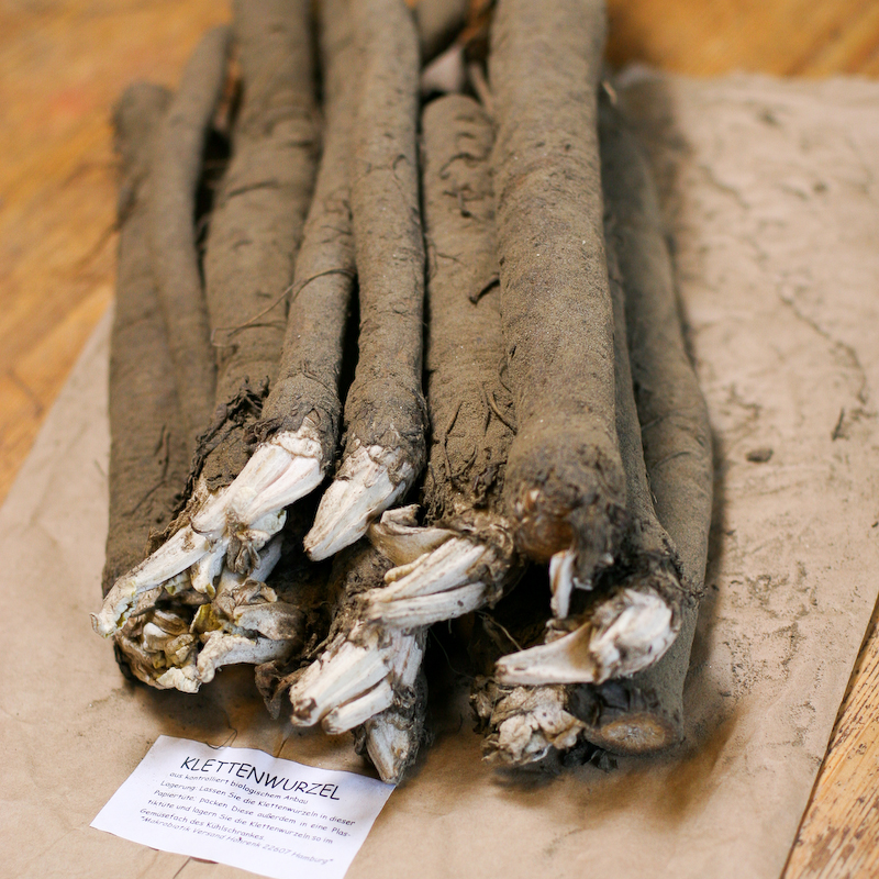 Japanische Klettenwurzeln mit Kartoffel-Brennnessel-Püree