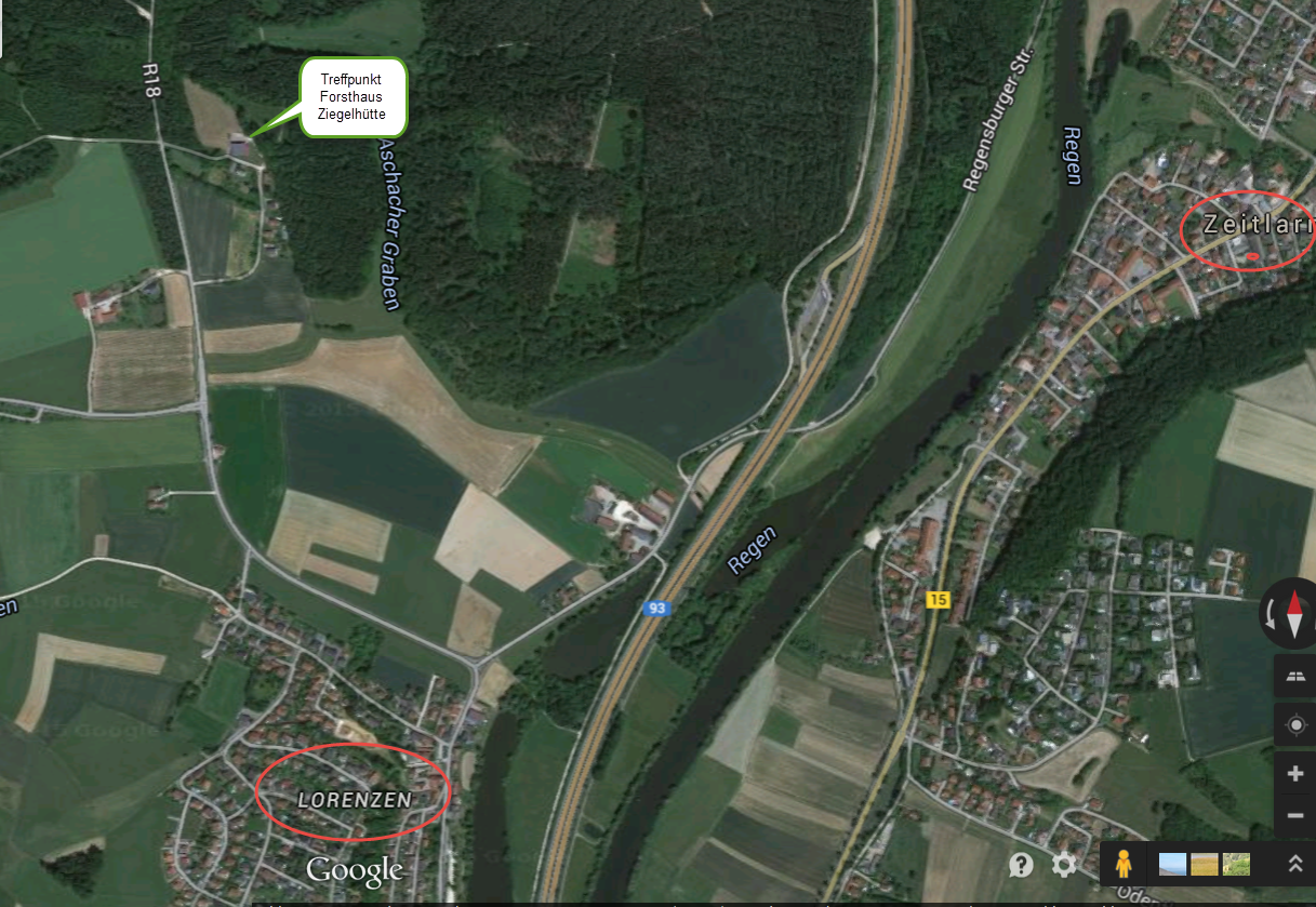 Treffpunkt: Parkplatz am Forsthaus Ziegelhütte; Buslinie RVV 13, Haltestelle Lappersdorf/Ziegelhütte.