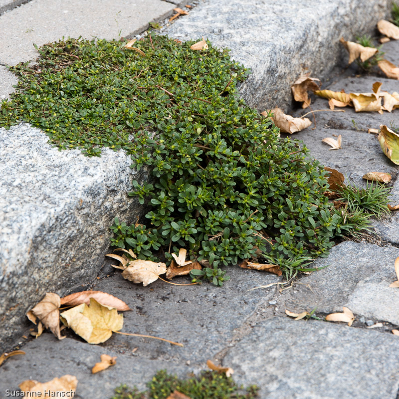 In den letzten Jahren, in denen die Sommer immer heißer werden, hat sich bei uns der Sommer-Portulak immer mehr ausgebreitet. In türkischen Lebensmittelgeschäften habe ich ihn vor vielen Jahren kennengelernt und in Lissabon und Venedig wiederentdeckt. Nun wächst er bei mir ums Eck. Krakenartig breitet er seine Triebe auf den Fußwegen zwischen den Wegplatten und an den Bordsteinen aus. Keine guten Plätze zum Ernten. Zum Glück wächst er aber auch auf Brachflächen die trocken und warm sind. Hier kann man ihn gut ernten.