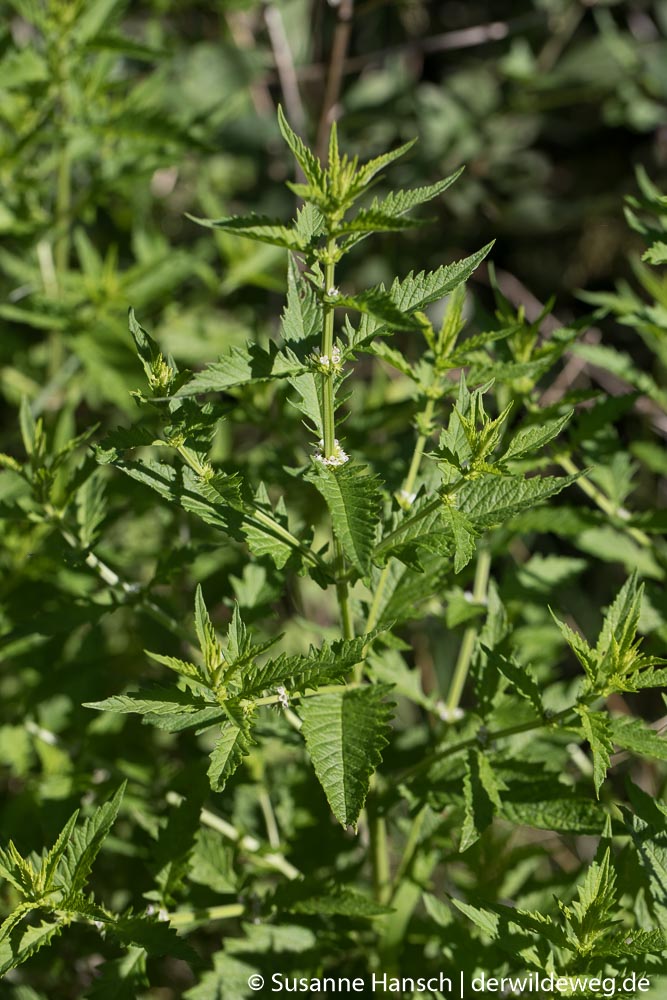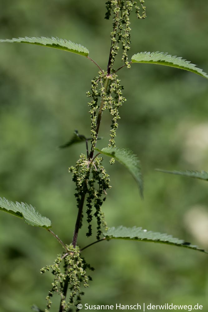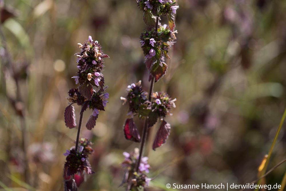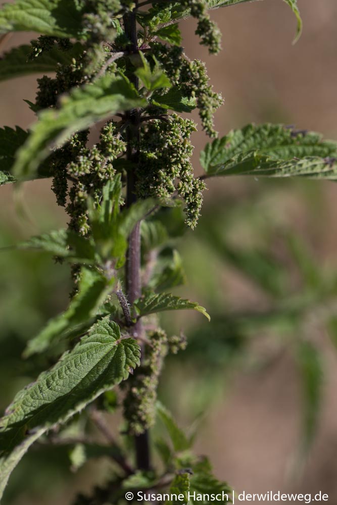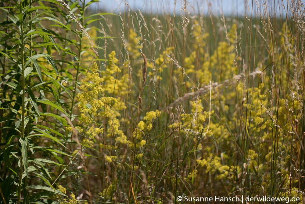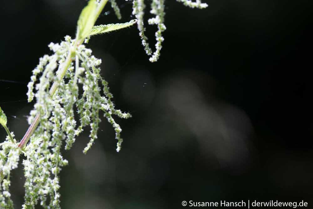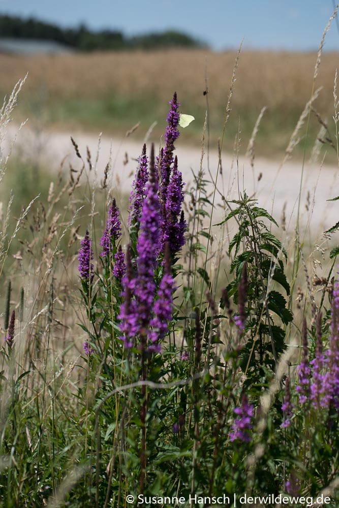 Zurück gings dann auf Feldwegen, mit Stops bei dem lieblich duftenden Echten Labkraut, der bitteren Schwarznessel, dem von weitem leuchtenden Blutweiderich und einem prächtigen Exemplar einer mit Früchten behangenen weiblichen Brennnessel.