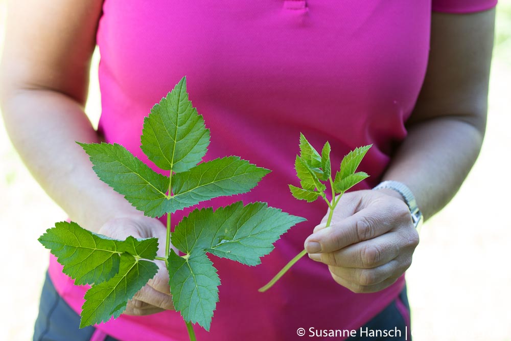 Der Gambach ist ein kleiner Fluß im Norden Regensburg, der sich durch Wiesen und Wald schlägelt. Auf den Wiesen an seinem Ufer wächst es wirklich üppig und so konnten wir auf unserer sommerlichen Wanderung eine wirklich vielfältige Auswahl an essbaren und auch giftigen – oder doch zumindest mit Vorsicht zu betrachtenden – Wildpflanzen finden.