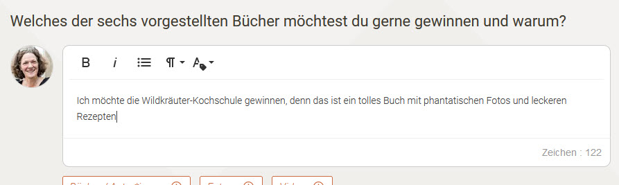 Wenn ihr Euch bei LOVELYBOOKS anmeldet, dann könnt ihr mitmachen. Einfach nur angeben welches der vorgestellten Bücher ihr gewinnen möchtet, natürlich die Wildkräuter-Kochschule 😉 und warum.