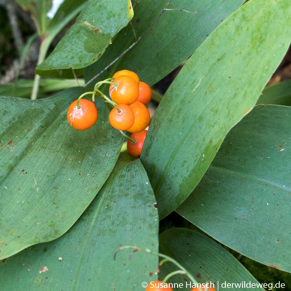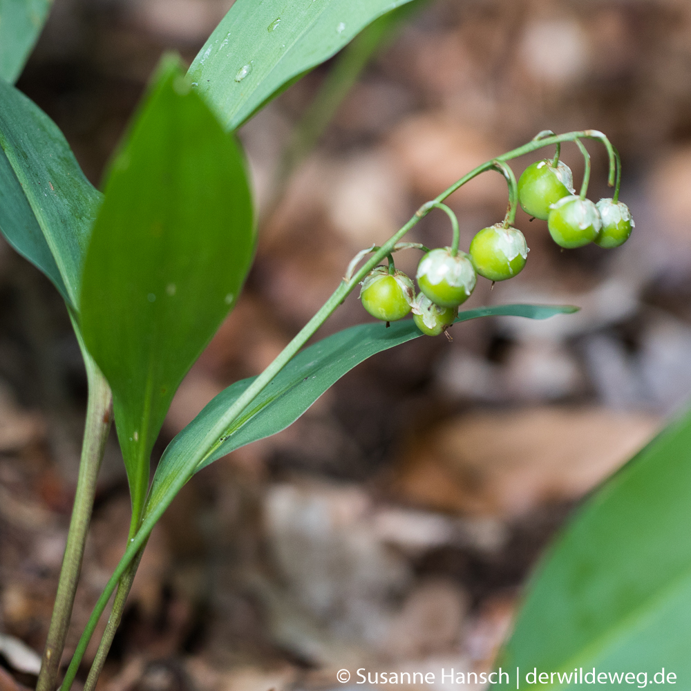 Rote Beeren sind verlockend. Nicht nur für Vögel, für die rote Beeren eine magische Anziehungskraft haben. Auch für uns senden rote Beeren das Signal „Iss mich, ich bin süß und nahrhaft.“‚ Doch man muss genau hinschauen. Hier sind es die Früchte des giftigen Maiglöckchens, die uns verführen wollen. Aus den hübschen weißen Blüten, die etwa im Mai blühen, alles andere würde uns bei der Namensgebung verblüffen, entwickeln sich erst grüne dann korallenfarbene Früchte. Doch die sind giftig.
