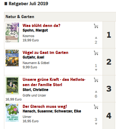 Juli 2019 – Spiegel Bestsellerliste Ratgeber – Natur & Garten Platz 4